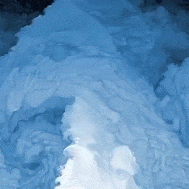 Movement in Earth’s oceans is driven by a complicated interplay of many factors like temperature, salinity, and Earth’s rotation. Above are results from a numerical simulation of the top 100 meters of ocean contained within a 1 km x 1 km box. The colors indicate surface temperature. Two major processes create the motion we see. The first is convection, in which water at the surface releases heat to the atmosphere and cools, causing it to then sink due to its greater density. Warmer water rises to replace it. This process happens quickly and dominates the early part of the simulation where we see the puffy convection cells shown on the left animation.