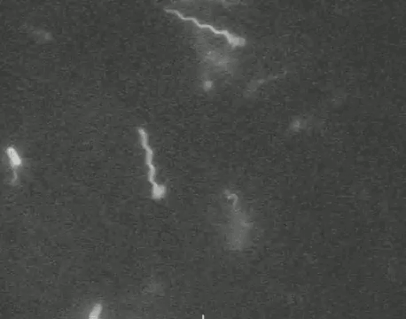 E. coli, like many bacteria, swim using corkscrew-like appendages called flagella. Because the bacteria are extremely tiny – their flagella may be less than ten microns long – their swimming is overwhelmingly dependent on viscosity. (Inertial effects are 100 to 10,000 times smaller than viscous effects for swimming E. coli.) Rotating their helical flagella generates viscous drag along the surface of the corkscrew. Because the flagella is asymmetric when you add all of those drag components together, the net force is thrust that moves the bacterium forward. Watch carefully in the animation above and you’ll see that E. coli have multiple flagella and will swing one out to the side during maneuvers. (Image credit: L. Turner et al., source; reproduced in a review by E. Lauga, pdf)