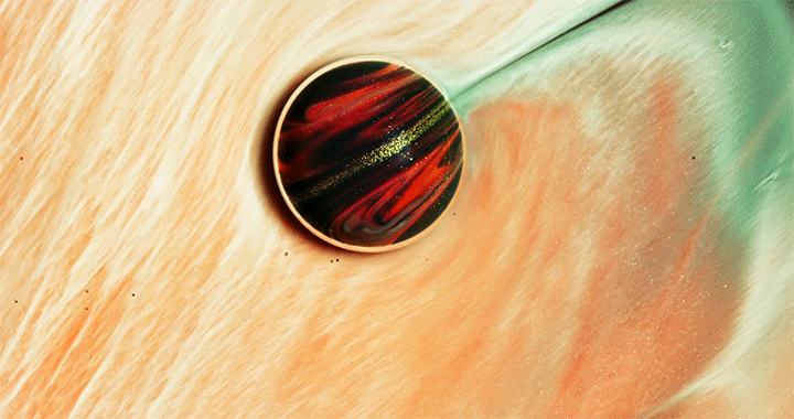 In Thomas Blanchard’s “Mini Planets” oil-coated paint droplets swirl on colorful backgrounds. With band-like streaks, they truly do look like miniature planets rotating. I love that a few of them even have distinctive vortices! (Image and video credit: T. Blanchard)