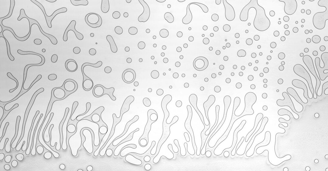 Though it looks like a strange underwater panorama, this image by photographer Marek Miś actually captures air bubbles trapped beneath the slip cover of a microscope slide smeared with drying callus remover. According to Miś, “Callus remover is one of my favourite agents for taking micrographs. It can create unusual crystalline forms. This time I found on the slide these interesting air bubbles before the callus remover started to crystallise.” I confess that I wouldn’t have thought to use callus remover for art!