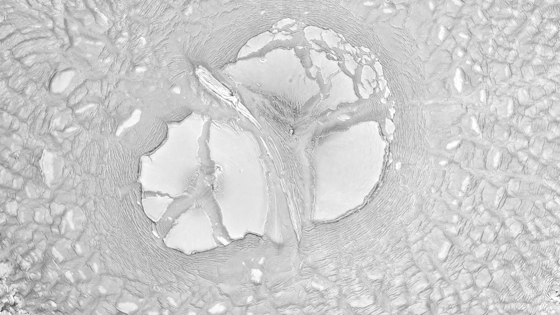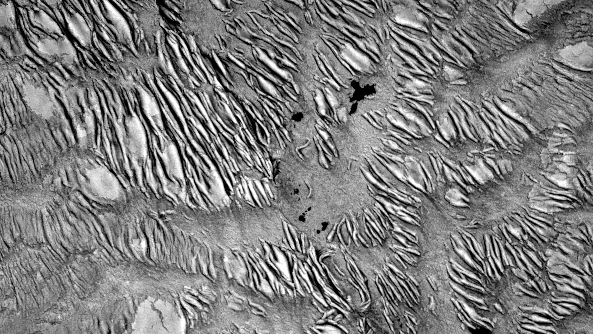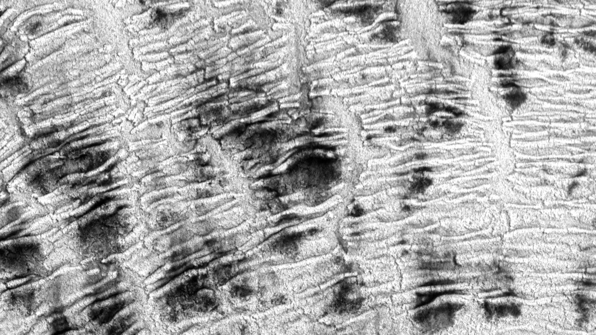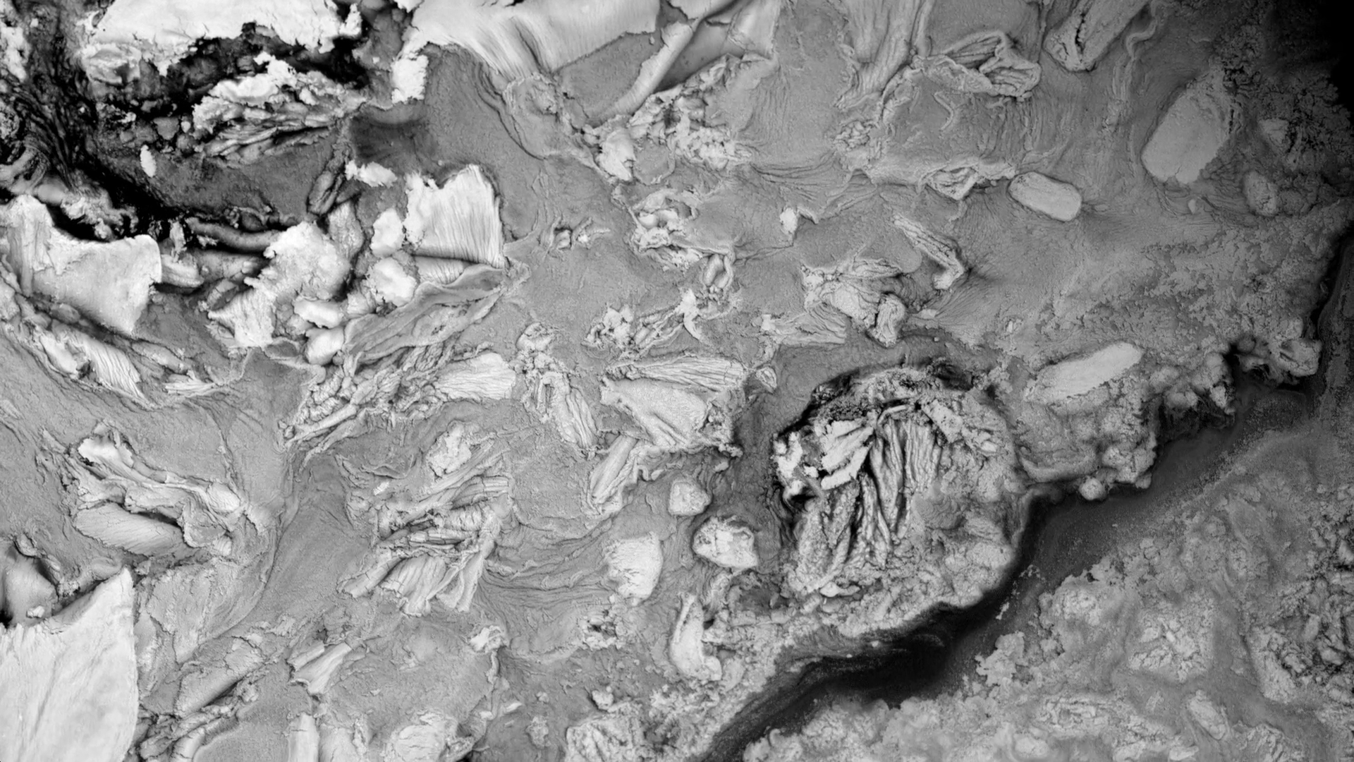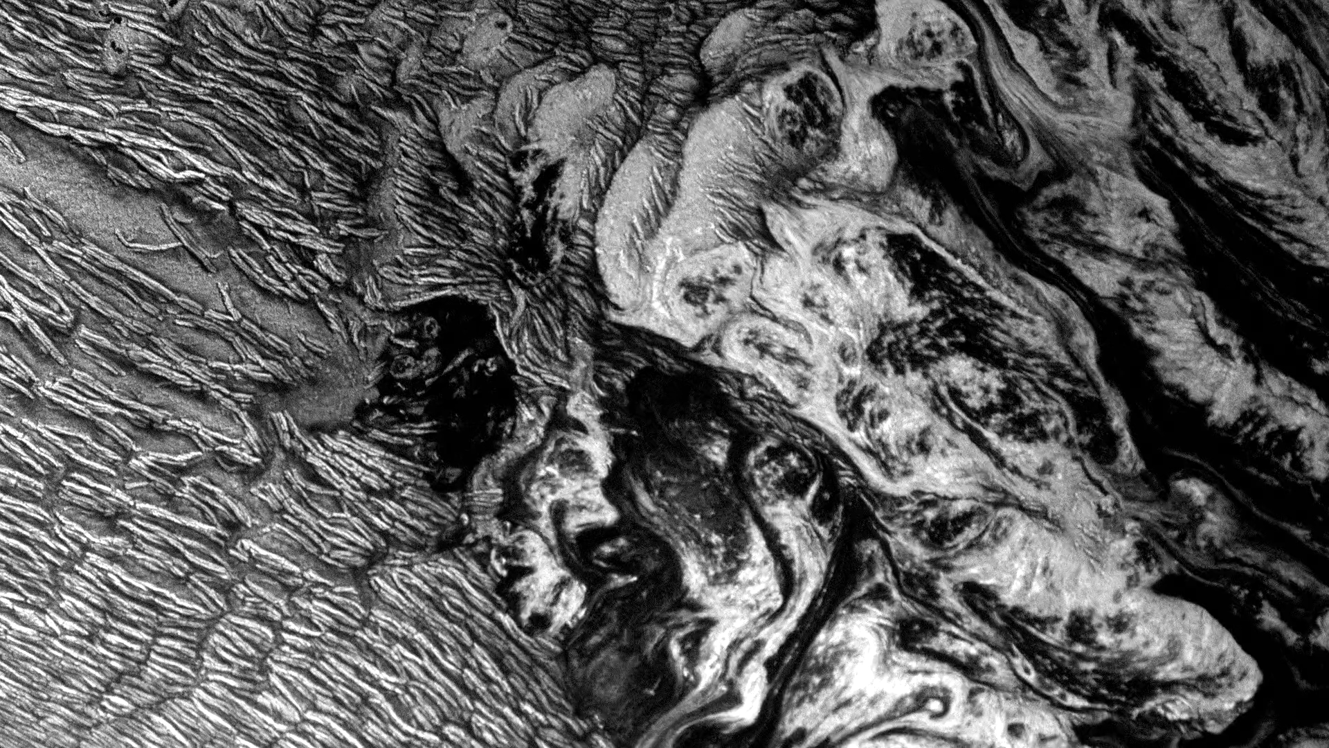 In Susi Sie’s “Haut” the camera seems to fly over ever-shifting landscapes. In reality, these are macro images, created (I think) by dyes and patterns atop a water bath. But they look like vistas we could find on Earth or Mars — giant dune fields, calving glaciers, and river-divided canyons. For something similar in color, check out Roman De Giuli’s “Geodaehan.” (Video credit: S. Sie)