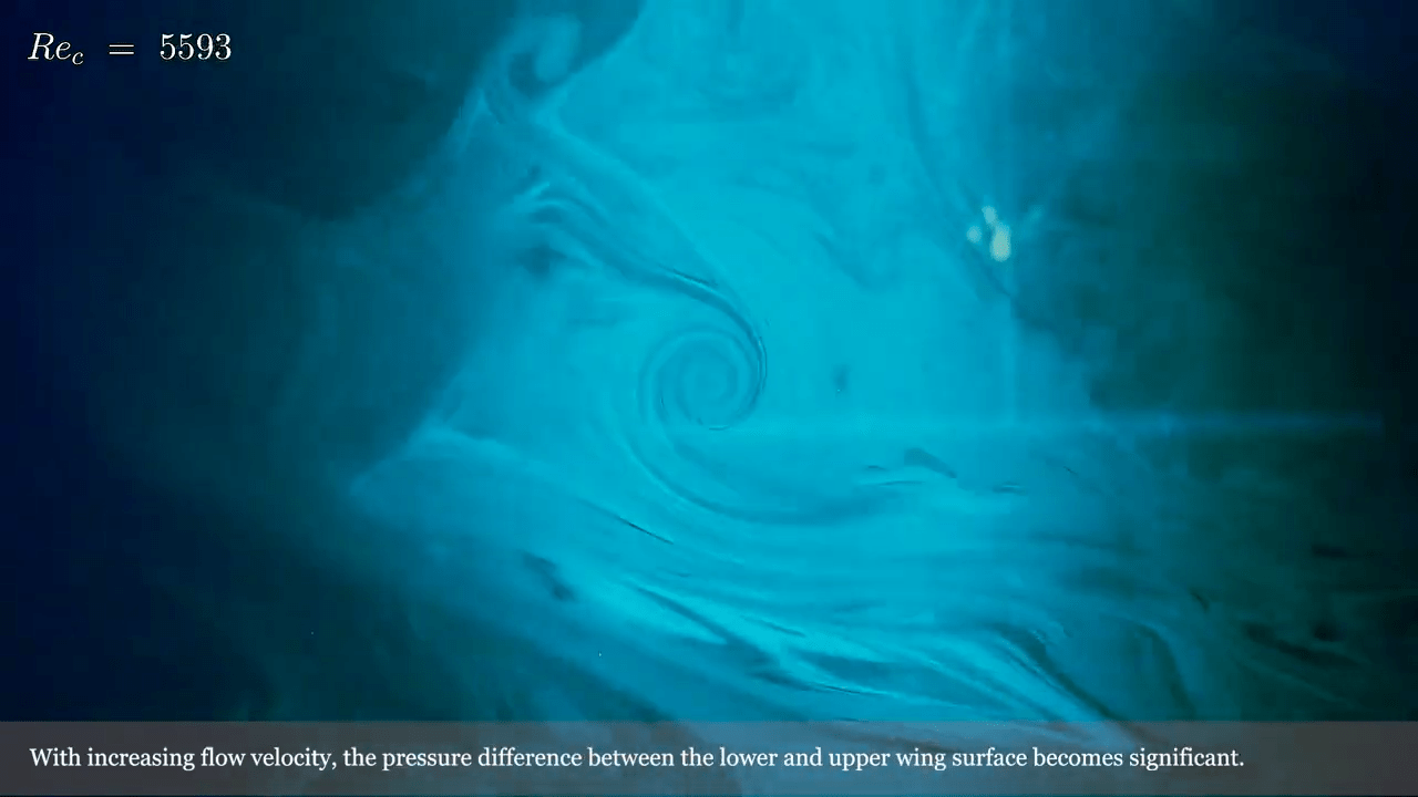 At the ends of an airplane‘s wings, the pressure difference between air on top of the wing and air below it creates a swirling vortex that extends behind the aircraft. In this video, researchers recreate this wingtip vortex in a wind tunnel, visualized with laser-illuminated smoke. The team shows the progression from no vortex to a strong, coherent vortex as the flow in the tunnel speeds up. Along the way, there are interesting asides, like the speed where the honeycomb used to smooth the upstream flow is suddenly visibly imprinted on the smoke! (Video and image credit: M. Couliou et al.)