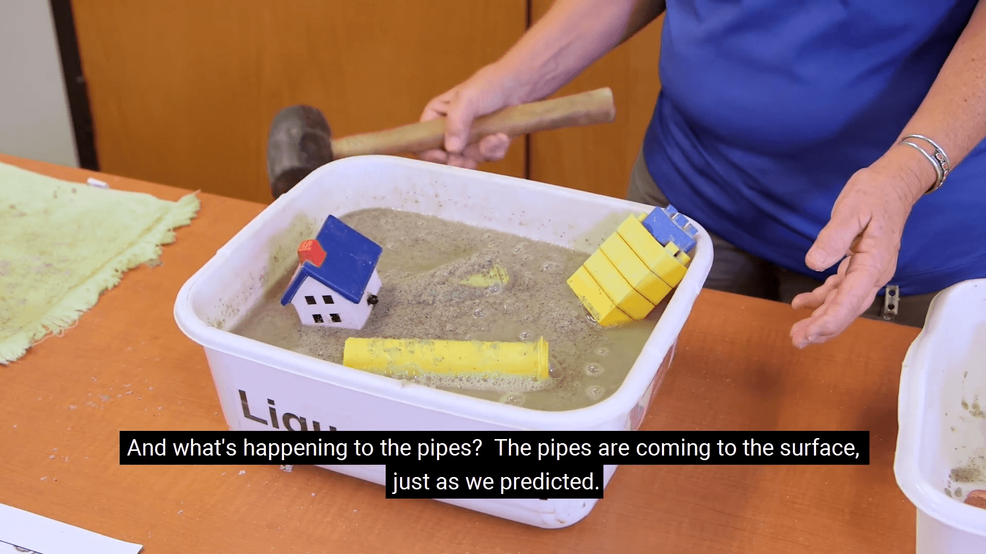 In an earthquake, sand and soil particles get jostled together, forcing any water between them up toward the surface. The result is liquefaction, a state where once-solid ground starts to behave much like a liquid. Buildings can tip over and pipelines get pushed toward the surface. In this video, a geologist shows off some great demonstrations of the effect, including ones that can be easily done in a classroom with younger kids. (Video credit: California Geological Survey)