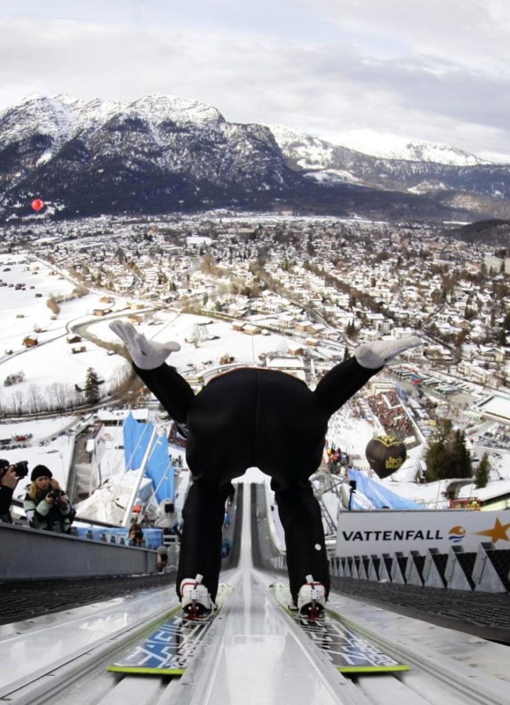 No winter sport is more aerodynamically demanding than ski jumping. A jump consists of four parts: the in-run, take-off, flight, and landing. The in-run is where an athlete gains her speed, and to keep drag from slowing her down, she descends in a streamlined tuck that minimizes frontal area. The biggest aerodynamic challenge comes during flight, when the jumper wants to maximize lift while minimizing drag. The athlete spreads her skis in a V-shape and flattens her body, using her hands to adjust her flight. Flying the farthest requires careful management of forces while in the air. Wind plays a major role as well, with headwinds helping athletes fly farther. To compensate, scoring includes a wind factor calculated based on conditions for each jump. (Image credit: B. Pieper, Reuters/K. Pfaffenbach, PyeongChang 2018)