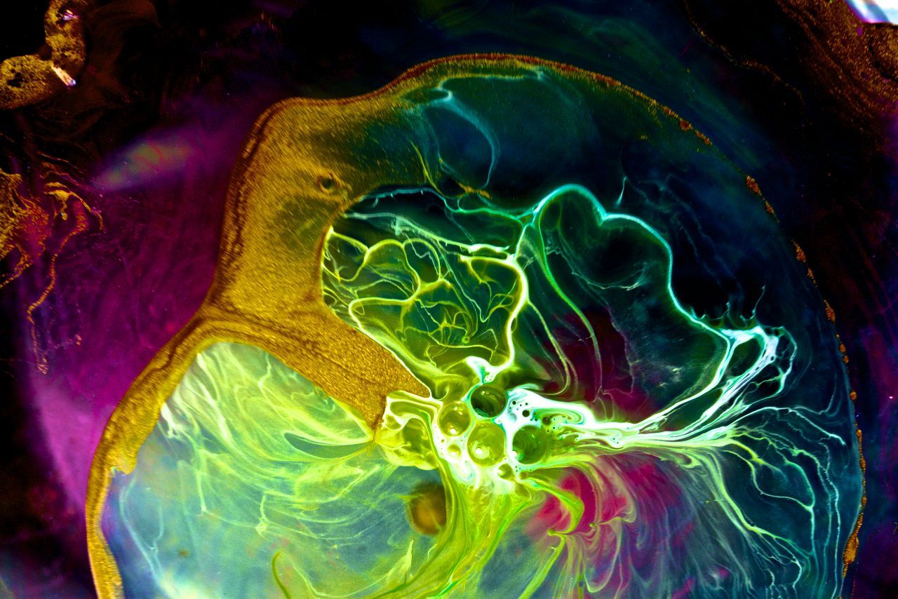 Exeter University artist-in-residence Pery Burge uses ink, water, soap films, and other fluids to create her spectacular “artistic flow visualization”. Looking closely, one sees the influence of bubbles, vortices, diffusion, and many fluid instabilities, all combined to create psychedelic and dream-like landscapes. For more on her work and additional galleries, see her website Chronoscapes. (Photo credit: Pery Burge)