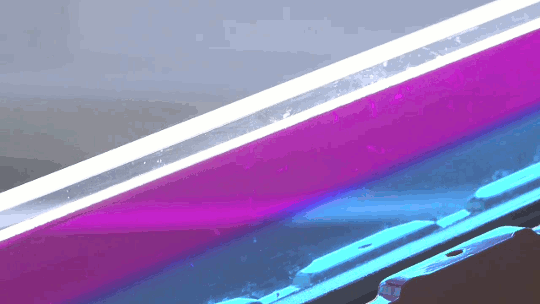 The second culprit, which is only found in the oscillating jet, is a Rayleigh-Taylor instability. By moving the jet side-to-side, you’re driving the dense liquid into less dense air, which creates a different set of disturbances that also help break up the jet. The final result: swinging the jet side-to-side breaks it into smaller droplets faster. (Image and research credit: S. Schmidt et al.)