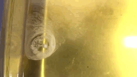The extreme cold of the nitrogen also seems to have formed some ice that’s further protecting the nitrogen drop. I’m not 100% sure what that would be made of, though – a mixture of water and gasoline?