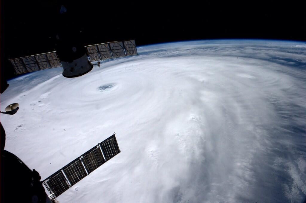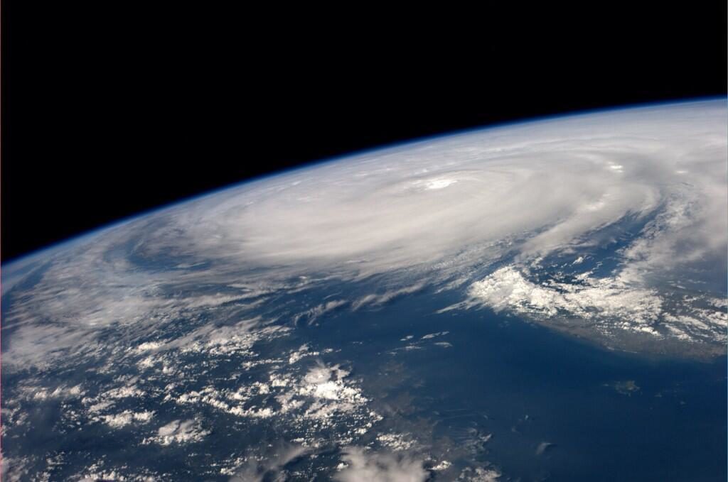 Astronaut Reid Wiseman has been posting photos of Typhoon Neoguri in his Twitter feed this week. From our perspective on the ground, it’s easy to forget how three-dimensional the typhoons and hurricanes in our atmosphere are. But Wiseman’s photos capture the depth in the storm, especially the depression of the eye. From the top, the typhoon looks much like a vortex in a bathtub, or what’s more formally known as a free surface vortex. To understand why a vortex dips in the middle, imagine a container of water on a rotating plate. As the water is spun, its interface with the air takes on a paraboloid shape. Two external forces are acting on the fluid: gravity in the downward direction and a centrifugal force in the radial direction. The free surface of the fluid adopts a shape that is always perpendicular to the combination of these two forces. This ensures that the pressure along the free surface is a constant. (Photo credits: R. Wiseman 1,2,3)