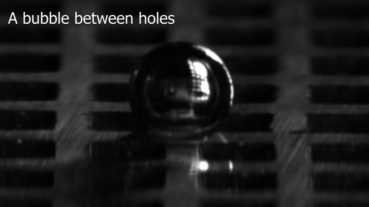 Cavitation bubbles live short, violent lives. Triggered here with a laser, these bubbles rapidly expand and then collapse, sending out shock waves. In this video, researchers explore how bubbles collapse when they’re near a plate with holes in it. For bubbles sitting between holes, collapse becomes asymmetric, eventually splitting the bubble into two as it falls in on itself. Bubbles centered over a hole perform a disappearing act, sucking themselves down into the hole during collapse. (Image and video credit: E. Andrews et al.)