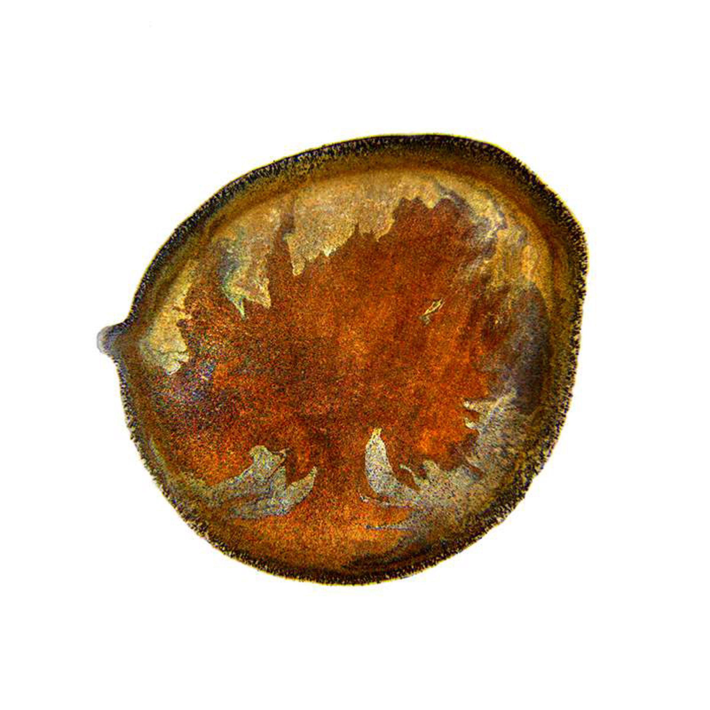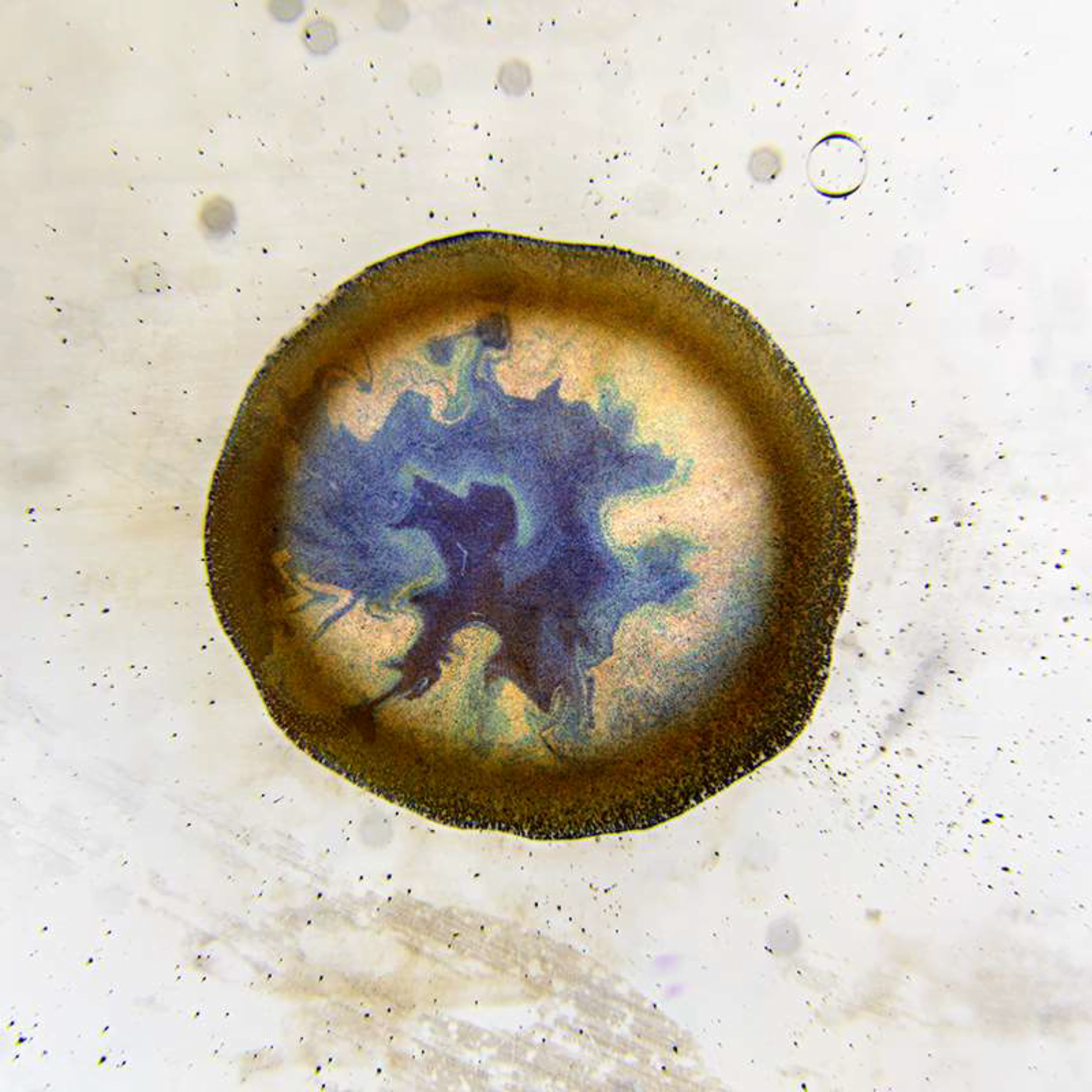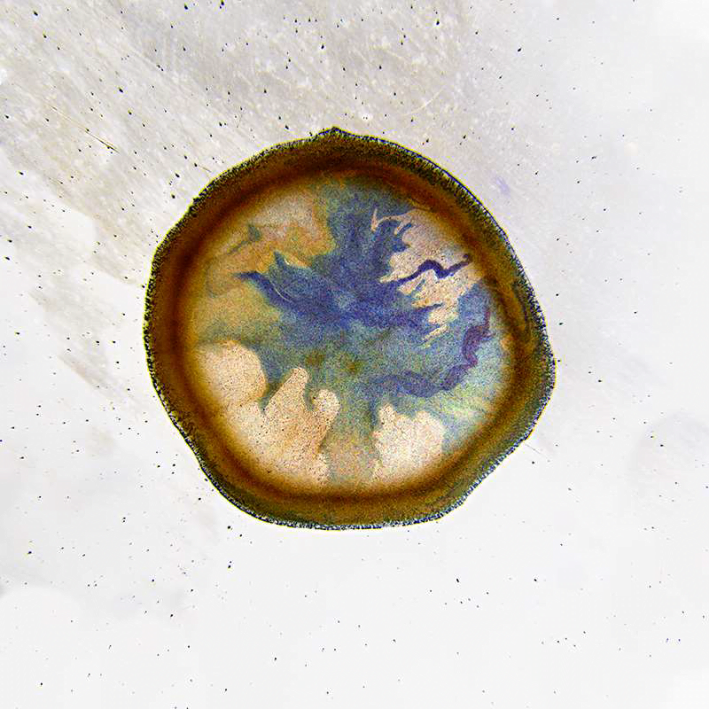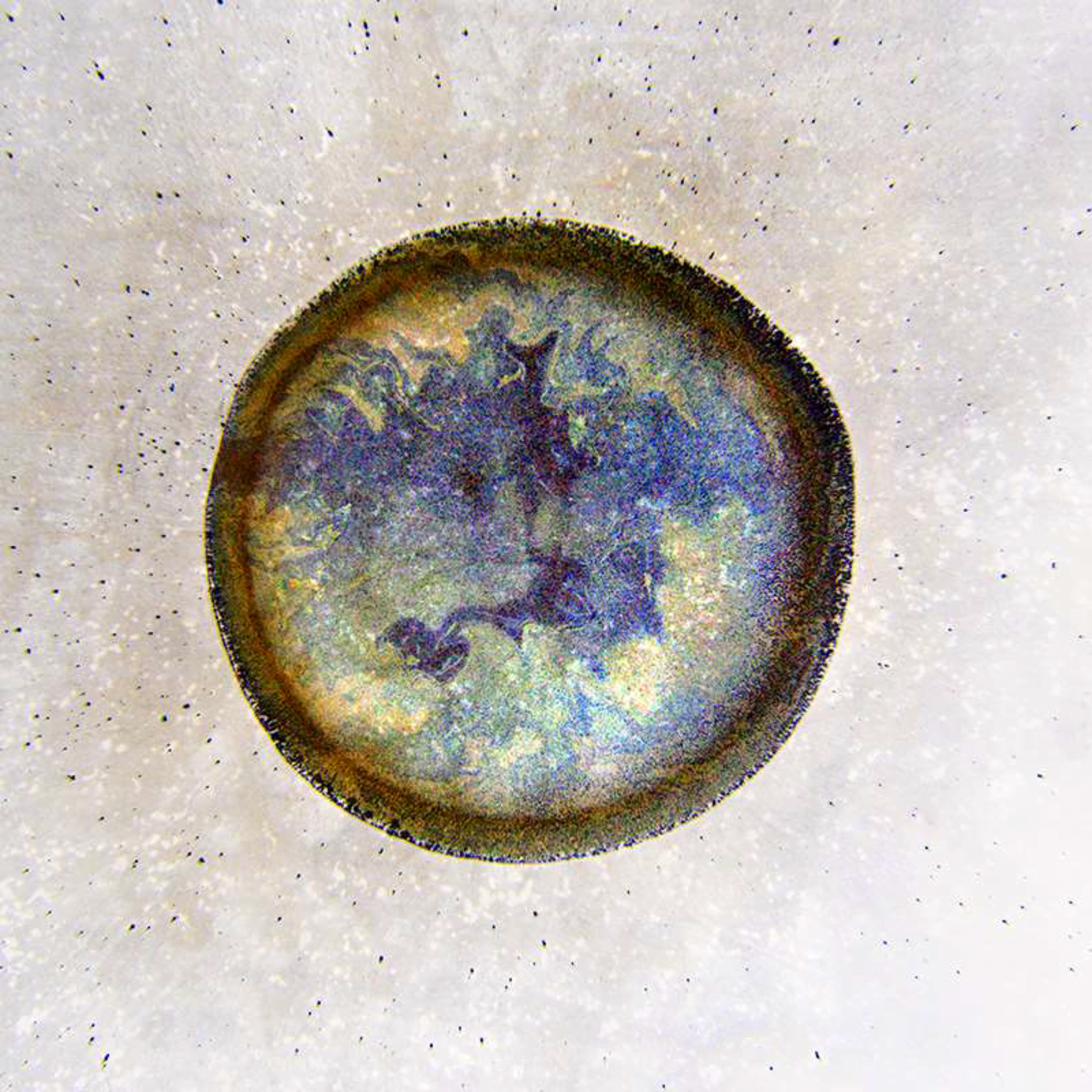 Researchers found that the cracks’ patterns and propagation are predictable through a model that balances the local elastic energy and and the energy cost of fracture. They also found that the spacing between radial cracks depends on the deposit’s local thickness. Besides explaining the patterns seen here, these cracking models could help analyze old paintings, where cracks could hide information about the artist’s methods and the artwork’s condition. (Image and research credit: P. Lilit et al.; via Physics Today)