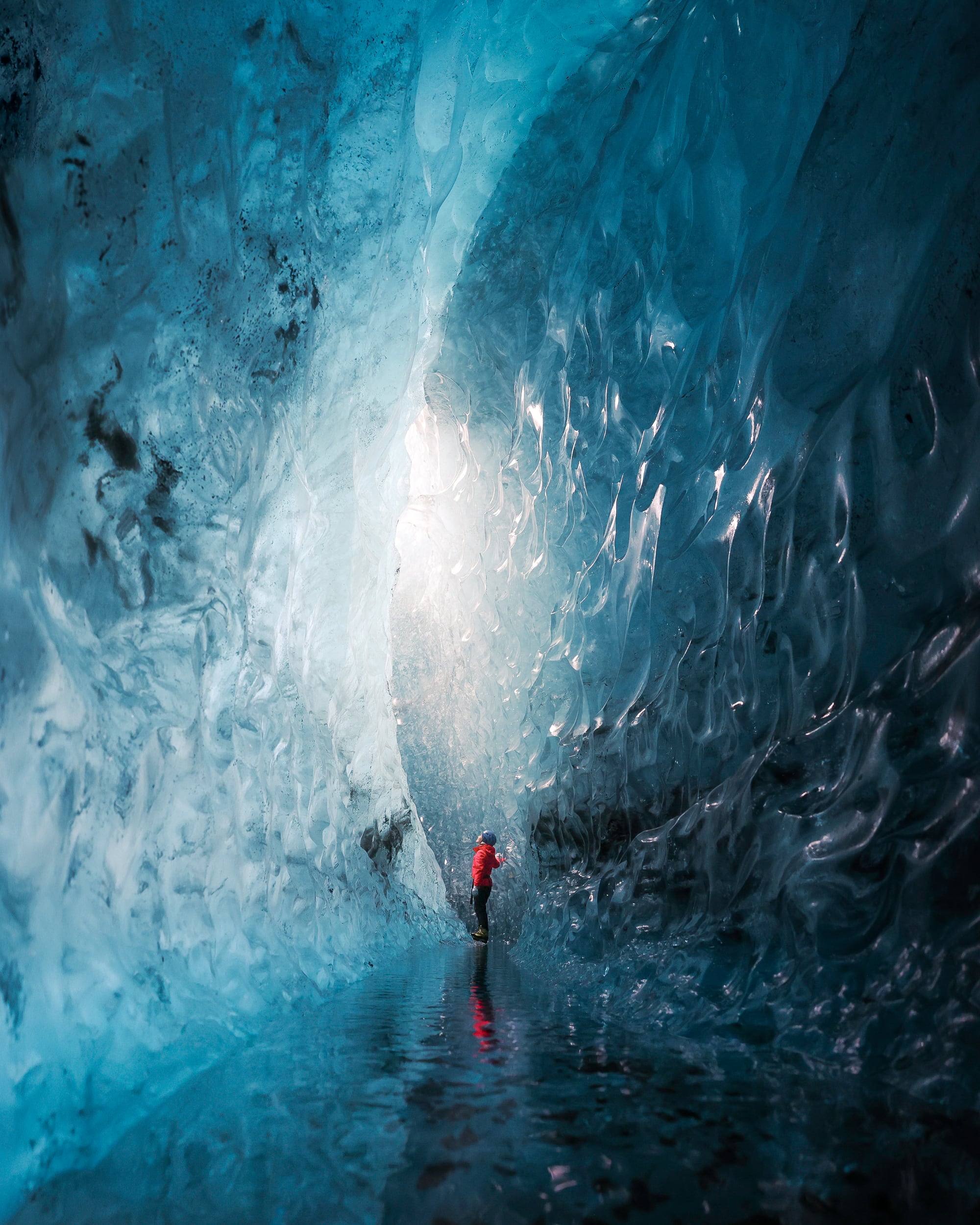 Expedition guide and photographer Ryan Newburn captures the ephemeral beauty of the glacial caves he explores in Iceland. These caves are in constant flux, thanks to the run and melt of water. The scalloped walls are a sign of this process of melting and dissolution. The icicles, too, hint at ongoing melting and refreezing. Caves can appear and disappear rapidly; they’re a dangerous environ, but Newburn freezes them in time, letting the rest of us experience a piece of their majesty. See more of his images on his Instagram. (Image credit: R. Newburn; via Colossal)