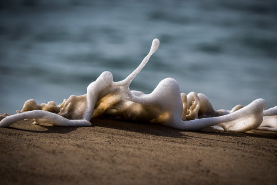 In fluid dynamics, we like to classify flows as laminar–smooth and orderly–or turbulent–chaotic and seemingly random–but rarely is any given flow one or the other. Many flows start out laminar and then transition to turbulence. Often this is due to the introduction of a tiny perturbation which grows due to the flow’s instability and ultimately provokes transition. An instability can typically take more than one form in a given flow, based on the characteristic lengths, velocities, etc. of the flow, and we classify these as instability modes. In the case of the vertical rotating viscous liquid jet shown above, the rotation rate separates one mode (n) from another. As the mode and rotation rate increase, the shape assumed by the rotating liquid becomes more complicated. Within each of these columns, though, we can also observe the transition process. Key features are labeled in the still photograph of the n=4 mode shown below. Initially, the column is smooth and uniform, then small vertical striations appear, developing into sheets that wrap around the jet. But this shape is also unstable and a secondary instability forms on the liquid rim, which causes the formation of droplets that stretch outward on ligaments. Ultimately, these droplets will overcome the surface tension holding them to the jet and the flow will atomize. (Video and photo credits: J. P. Kubitschek and P. D. Weidman)
