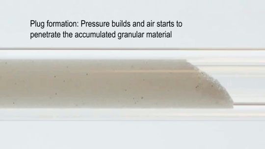 - Granular Plugs - Imagine filling a narrow tube with a mixture of water and tiny glass beads. Then take a syringe and very slowly start drawing out the water. As the water gets sucked out of the tube, air will be pulled into the opposite end. The meniscus where the air and water meet sweeps up the glass beads like a liquid bulldozer. As the experiment continues, pressure builds up and air starts filtering through the beads, changing the viscous and frictional forces the system experiences. Eventually, the grains break off, leaving a chunk of glass beads – known as a plug – behind. Keep draining the tube and more plugs form. Check out the video below to see it in action! (Image/video credit: G. Dumazer et al., source; research paper; open synopsis; submitted by B. Sandnes)