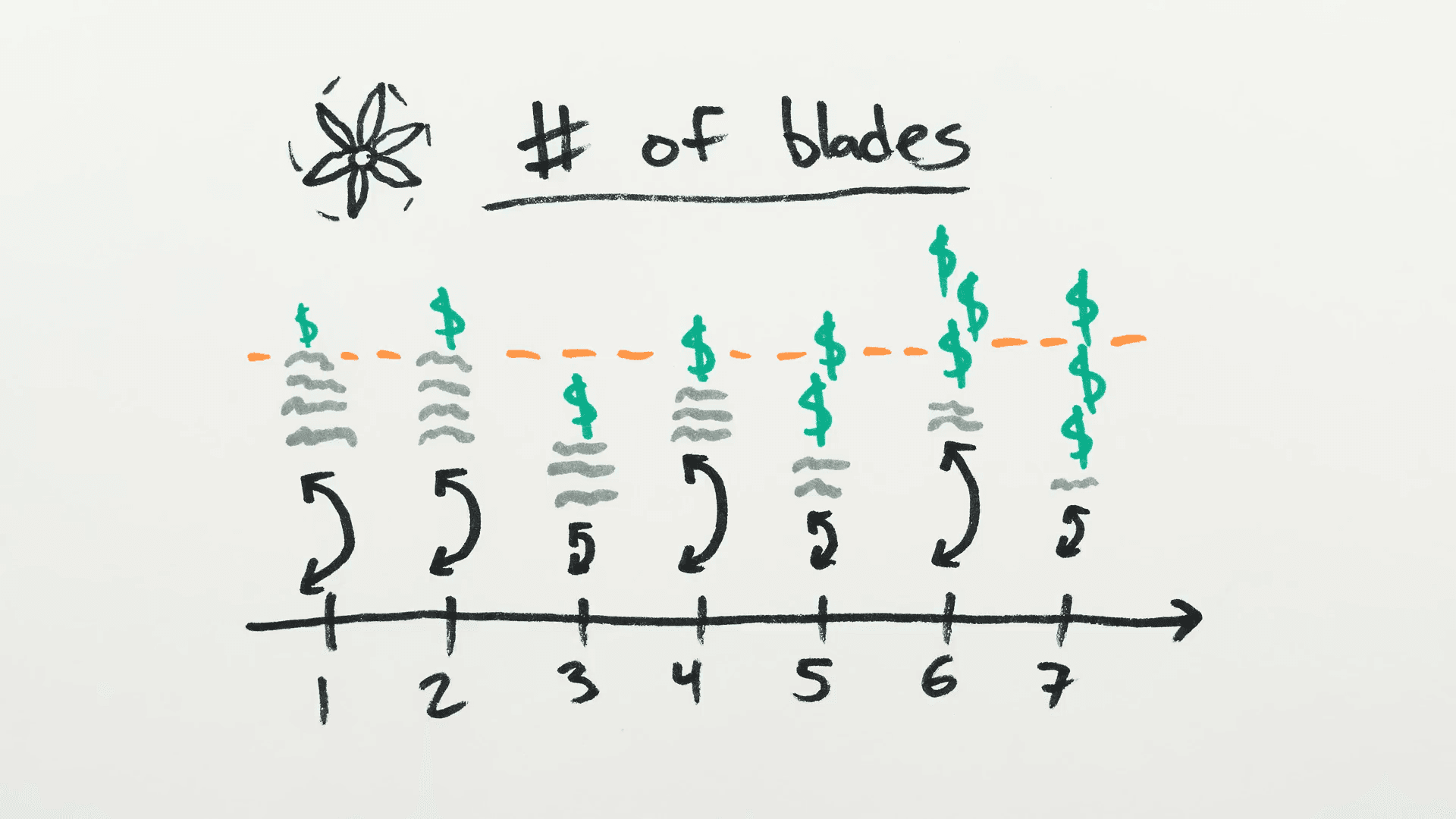 Although wind turbines can have any number of blades, most that we see have three. The reasons for that are many, as explained in this Minute Physics video. In terms of physics, wind turbines with more blades produce more torque, but they pay for it with more drag. Engineering-wise, wind turbines with odd numbers of blades have less uneven forces on them, and, thus, cost less. And, finally, people just prefer the look and sound of 3-bladed wind turbines over other forms! (Video and image credit: Minute Physics)